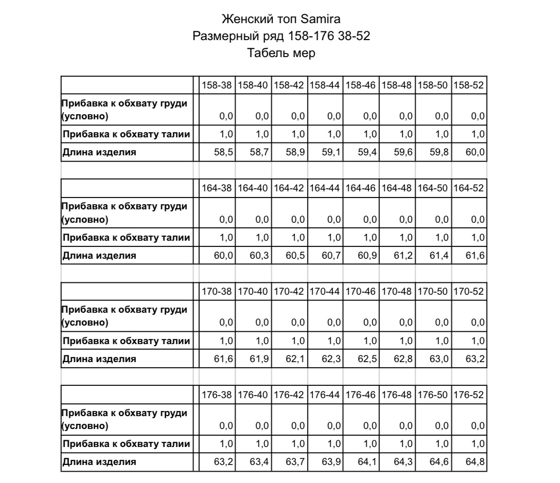 Обхват талии: +1см